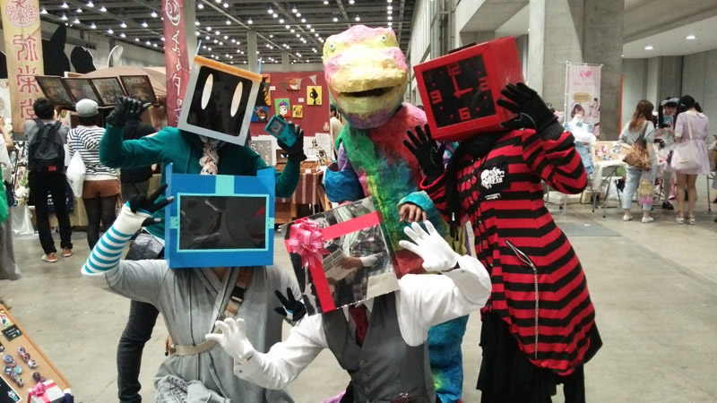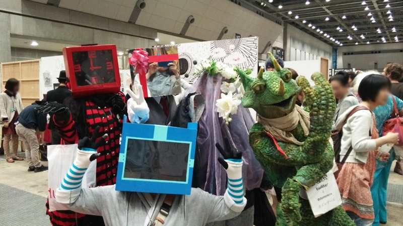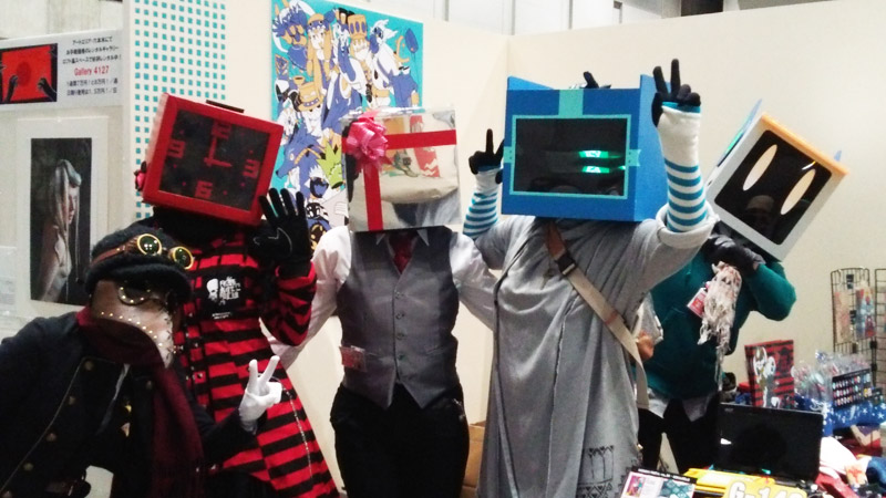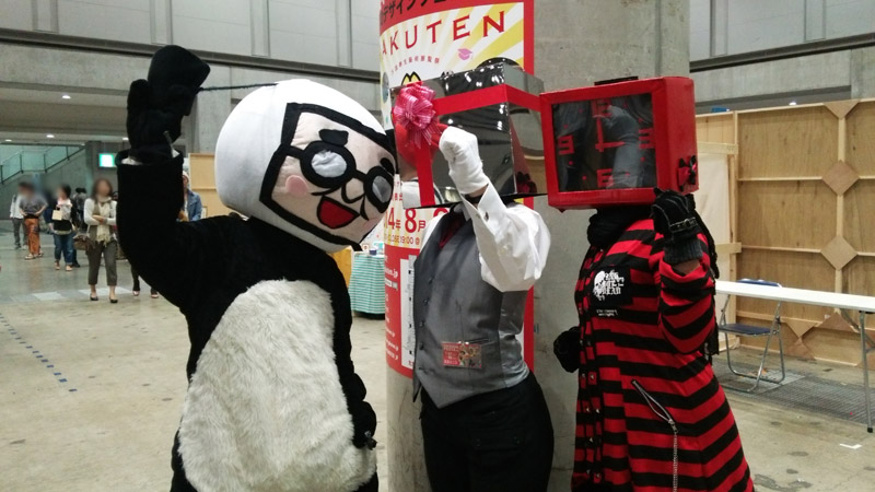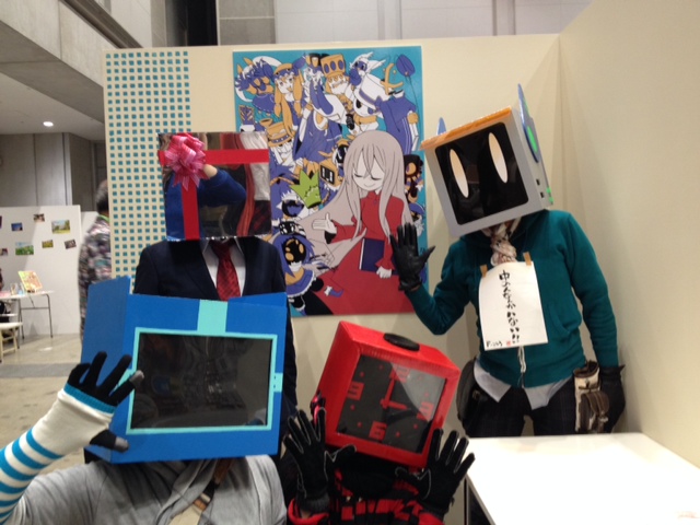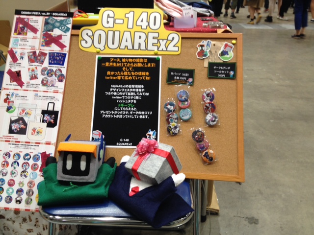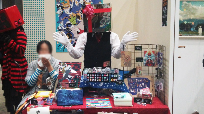 2014/05/20 Category : ゴホウコク デザフェスお疲れ様でした!(レポート編) 今回で3回目となりましたデザフェス、場所の関係もありとても好評でした。 実はチョータ式さんが目の前のブースとしったのは間近で..びっくりです。 当日のことをちょっとだけかいつまんで絵にしてみました、始終漫才みたいなことをやっていたブースです。 ギーク、プレボが主催するブースだったんですが、お手伝いの葵くんちゃんさん、赤時計さんがくわわって、最高4人での運営になりました。お疲れ様です。あとプレボの角は殺人角。 まわったりもしていたのですが、その効果もあってか「ここにいたんですか!」と訪れてくださる方も多かったようです。 当日の様子の写真はつづきから! ヨウコソSQUAREx2へ! ブースはいたって普通のこんな感じ お客さんですか?はいはいドウゾ。こうみるととってもシュール、とっても異質空間ですね。 みんなが喋らないのでギークは普通にしゃべりました、ラッシャイ! 「しゃべるんかい!」「あ、はい」 横にはこんなものが。 このパペット、子供にウケがよかったそうですよ。 おやおやプレゼントボックス(以下プレボ)さん、 お仕事してますか?彼もちゃんといたようですね。 そんなことはなかったようです。プレボ仕事しろ。 遊んでないで仕事してください。(にんじんさんと) とかいいつつちゃっかり買い物には行くギークです(GUCHIYAMAさんスペースで) 仲間を発見したようです(ロボの方と、お名前わからず) 大体こういう方をプレボが呼び込みます。さすがたらし、さすがプレイボーイ ときには別のかたがお邪魔しにきたりもします(ペストマスクさんと) プレボの圧倒的ブース仕事放棄率(トウキョウゼンタイクラブさんと) お写真はないですが、お仲間認識度高い箱頭の方もこられました(ぼくさんです) マークをぺたり 何かとおもったら、そう、二人合わせてコーヒー♪(オレ、ゴーレムさんと。名前あってるかな?) ときにはクオリティの高いたかもよびこんで記念撮影をします(maxcaffyさんと) プレボ主張しすぎ。 こちらもクオリティが高いです(カメレオールさんと) テンションがとてもたかかったです(カイジュウさんと) ブースがとってもゆるゆるだったそうです、耳、動くんですね...(滑川三郎さんと) そんなこんなで、2日間たっぷり楽しみました。 おちゅかれさまでした。 う~ん、疲れた... ギープレの他のお写真、もしお持ちの方がおりましたらいただけるととても助かります... あとツイッターのほうでハッシュタグ#ギープレでも様々な写真が上がっていますので そちらもみてみてくださいね。 PR Comment1 Comment どーーーーもーーー 滑川三郎さん (2014/05/30 00:28) [コメントを編集する] ちわーー箱さん達 デザフェス39お疲れさまでしたー 部屋でゴロゴロしていて 会場内をお出かけしなくて ごめんなさい。 お箱さんと もっともっと 遊んでいたかったです。 次回は我が家に遊びに来て下さい。 お茶と笹を準備して待ってます。 Comment Form お名前name タイトルtitle メールアドレスmail address URLurl コメントcomment パスワードpassword