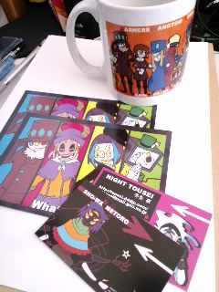 2010/01/26 Category : ドウジン・キカク グッズ作るのが好きです(お知らせ) どうも、冬生です。お腹の傷が大分よくなってきました。まだまだ後はのこっておりますが 先日、頼んだ新しい名詞、ポストカード、マグカップ、そしてバッグが全て自宅に届きました。 今度の2月コミティアにて配布または販売します。マグは1500円、バッグは1800円です。 マグは名刺にも使った絵柄のリデザイン、バッグは新規デザインです。ただいマグでスペルミスをやらかしたのは、私だ← ちょっと早いイベント告知。 どちらも、欲しい人いるのか!?というようなものなので、数はほとんど作ってません。 (が、すでに欲しい人で作った分おわりそうなので、イベント前にまた頼みますが) またポストカードにつきましては、すでにハイクリサイトにて、希望者及び配布者を募集しております。 送料以外はかかりませんので、是非ドウゾ。大量にあるしね!!(そこが問題 そして、ついったーなどでもきいているのですが、バッグは普通に郵送できるものなので、 もし欲しい方がいましたら、メールフォームからご連絡いただければ通販もいたします。 色はグレーとナチュラルの二種類です。グレーは銀ねずに近い色合いです。 印刷色は、グレーが濃い青の線に青緑の色づけ、ナチュラルはちょっとあせた赤の線にオレンジの色づけです。 絵柄が目立つのはナチュラルです(グレーは背景色のせいで、バックが濃く、一部文字が見づらいかんじですが、シンプルで無難に使えるのはこっち?) 9キャラカット絵と文字が入ったデザインとなります。 サイズは、A4サイズがすっぽり入る大きさで、B4も上がちょっとでちゃいますがなんなく入ります。マチは約11センチあるので、かなりの容量をつめこめるものです。 なおトートバッグで、ポケットとかはついてないんですが、かなりしっかりしていてペラペラじゃなく、布製なので荷物を入れるのとかに便利かもしれません....例えばイベントの戦利品とか(ぉ 素材はやわらかいので、折りたたんでおくことも可能。 と、そんな感じです。郵送する場合はエクスパックを考えています。 ついでにポスカも送ってクレーの場合は、欲しい枚数かいてくだされば一緒に送ります。 こういうのは作るの楽しいですが、需要は?ときかれたらうーんとしかいえない...; とりあえず、また頼まないといけないことは確かのようです