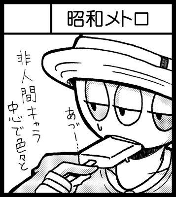 2009/08/15 Category : ドウジン・キカク 明日のことについて どうも、冬生です。いよいよ明日は夏コミ!実はまだじゅんび終わってない!!← 今年も大変な人人人らしいですが、サークル参加の方も一般の方もはりきっていきましょう。 サークル昭和メトロは西地区せ-12bとなります。 新刊はハイクリ4 既刊にハイクリ2、3とキャラ本 委託にハロランアンソロと、 追加で人外ナカーマのカジマさんの個人誌を置かせていただきます! (むしろ本人が今こっちにきている、当日も本人来る) 開場直後は冬生は買いにでかけているのでいません。お昼にはいます、むしろお昼に来ると、 おかしな人外ナカマが集まっているという光景を目の当たりにする...かもしれません。 いつも通り暇してますので、いじるなり声かけしてくださるなりしてやってくださいませ。 いないと思いますが、スケブはOKです。 今日はわざわざ関西から来たカジマさん迎えにいったり、pixivナカマのやちゅいさんと合流したり、クリネコさんとも合流して展示みたりお茶したりしました。 お茶はあまりにもカオスすぎて始終笑いとまらなかったです。庶民丸出しの人たちがここに そして自分はつむじを押されても大丈夫なように体制をととのえて挑まないと...おされるっ、おされるっ。 それでは準備に戻る!