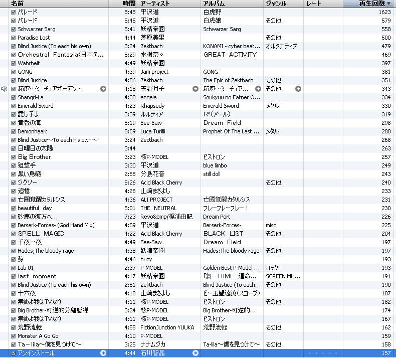 どうも冬生です。気になったのでipod内の再生回数チェックしたら一曲だけずばぬけて多いのがありました。