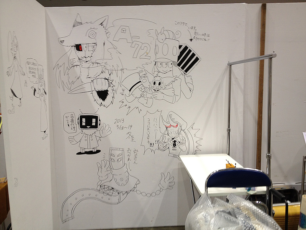 左側の壁に。かいてるときにすっごい見られていると思ったらフォロワーさんでした、ドキドキ。
