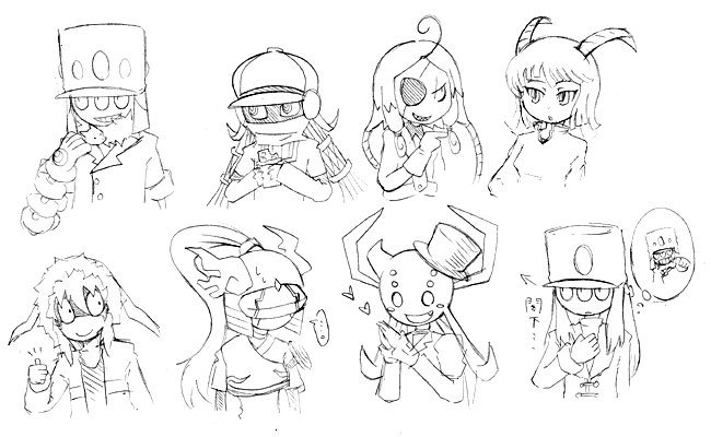 2007/12/18 Category : ソーサク 大体色決まった キャプテンの配色はこんなんでいいや、赤髪。 別に寝不足じゃないのにものもらいができた冬生です。どうでもいいことですがささくれが過去最多かもしれません。 つい最近出来た話のキャラたちまとめを(デザインがほぼ決まっているやつ) なんかバラバラにいってばかりなので分かりづらかったので... 汚くてスンマセン、最近また描けなくなった;いやいつも描けない 左上から順に信号目のラングトン(閣下)と首元にQちゃんことクエイク、 甘党ハニーちゃん(弟シュガーと妹メープルがいる、結構話を真に受けるタイプ) キャプテン・バルバロス(アホ毛でチビ、ストリップ) 令嬢ヒルト(ナルシスト、汚いことはしないお嬢様) 下にいって情報通のザン(相談はマニーマニー) 鎧将軍チェイン・ホゥ(一度に二つのことができない人) カマ蜘蛛カフカ(別名閣下の最終兵器、しかし逆に狙われることもある肉食蜘蛛、おいしい彼氏募集中) 閣下とおなじ種族の三つ目のプロパガンダ(病的閣下愛、作者公認の腐で危ない人) あとプラスで双頭のバーチャル将軍C2(ずっと飽きずに計算している寂しいやつ) サイン(ゴキっ子、頭の矢は抜いてはならぬの子) 他に閣下の副官とか、ヒルトの執事のセバスチャンとかいますけどデザイン決まってないので話にしか出てきません。 一番最恐(強でもあるかも)はカフカ、おいしそうと食べようとし、また自分の男にするために誰にでも手をだします。閣下がカフカを養ってあげているので毎日ビクビクする日々です。 そして新しくプロちゃんというキャラが入ったので、板ばさみで眠れない日々を送っているそうです。 後ろからずっと着いてきたり、座っているとひざに乗ろうとしたり、寝ようとしたら布団で待ち構えていたり。 みんな仲悪いけど変なとこで気があったりするので組んだり裏切ったり。 あまりにも一人一人キャラが濃いので、案外普通なチェインさんが逆に浮く。 正直に言ってしまえばもう今覚えて描けるキャラ少なくなってしまったので、資料ちゃんと作らないとどんな衣装でどんな顔だったか分からなくなるので早く描かなければなりません。 見なくても描けるのは閣下とバルバロスくらいしかおらん!あと知らん!(ぉ 描くことへの雑さはピカイチなんで、顔とか髪とか適当です。 むしろ雑というか、まだ描きなれていないからというのがあるとは思います、いっぱいいると全部が全部同じように何度も描けるようにはなかなかならない。絶対顔は変わっていく。 結構描きづらい造形キャラも作ってしまって後で後悔するので、そういう奴ほどもっと練習したほうが良いのでしょうけど。 とりあえず、皆から愛される主人公は描いていて楽しいです。変な愛の形で愛されているから本人は疲れ果てるけどそれでも楽しいです。